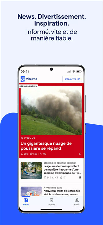 The 20 Minutes app keeps you up-to-date with Swiss and international news in real-time. With clear, concise summaries and live updates, you can quickly access the most important stories in politics, business, sports, culture, and more.