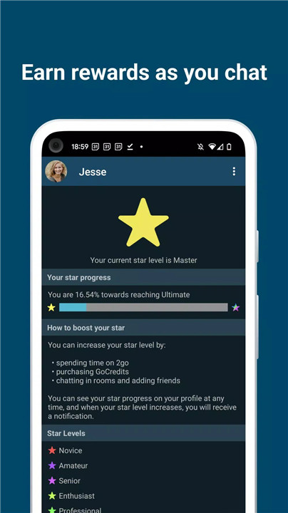 The app includes a star-based recognition system where active participants earn stars as they engage more in chats and hangouts. This feature highlights top users and encourages lively participation within the community.