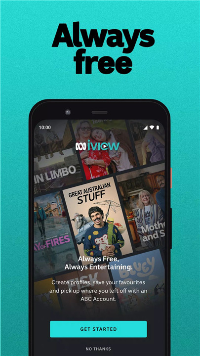 Experience the best of Australian entertainment with ABC iview, the ultimate ad-free streaming app. With over 5000 hours of TV shows, movies, documentaries, and kids’ programming, ABC iview lets you enjoy your favourite content anytime, anywhere. Designed for easy use, simply download the app, create your free account, and dive into a world of high-quality entertainment without interruptions.