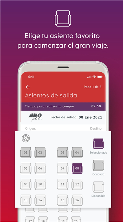 • Thanks to its modern design, user-friendly interface, and innovative features, ADO Móvil is prepared to accompany you before, during, and even after your journey.