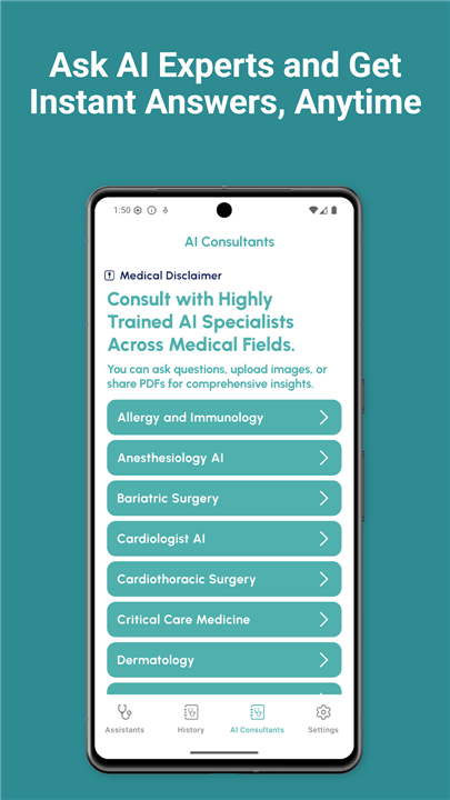 Q: Which medical specialties are covered by the AI Assistant?