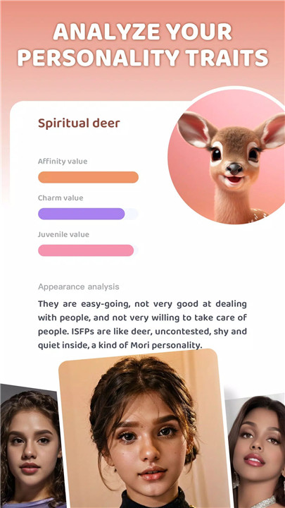 Curious about which animal type matches facial features? The app accurately pairs appearances with animals such as cats, deer, tigers, or foxes. Each match includes insights into associated personality traits and psychological characteristics, adding a meaningful and entertaining dimension to the results.