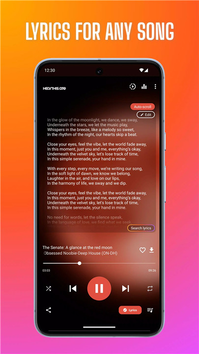 Fine-tune your music with a powerful equalizer featuring presets like Hip Hop, Jazz, and Rock, plus bass boost and variable playback speed. Follow along with synced lyrics, edit song tags, and create unlimited playlists to organize your music library effortlessly.