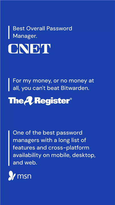 In a digital world filled with constant threats, Bitwarden provides peace of mind. Recognized by top tech authorities like PCMag, WIRED, CNET, and The Verge, Bitwarden is one of the most trusted and feature-rich password managers available today.