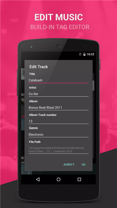 · Manage and edit your library with the built-in ID3 Tag Editor, allowing you to modify track titles, album names, artists, and genres.