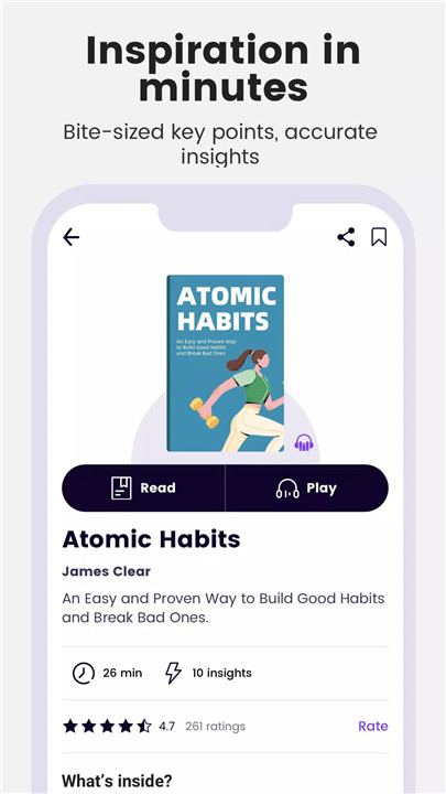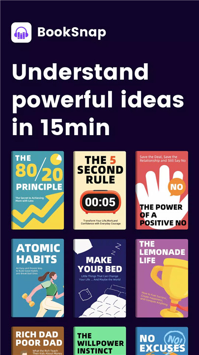With an average length of 15–20 minutes per summary, Booksnap makes it possible to absorb powerful ideas without long time commitments. Bite-sized learning helps build consistent habits and accelerates personal and professional growth.