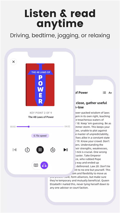 Booksnap supports both reading and listening, allowing learning to fit seamlessly into daily routines. Audio summaries enable hands-free learning while commuting, exercising, or relaxing, while text versions offer focused reading sessions. Summaries can also be downloaded for offline access.