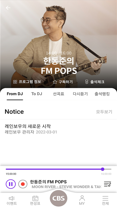 CBS radio application that allows you to listen to radio broadcasts and music on your smartphone in CD quality Download the latest version of CBS 레인보우 to enjoy new features and updates immediately!
