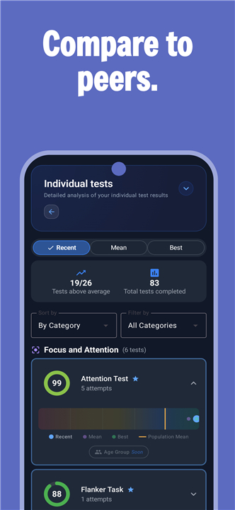 These sessions are quick but effective, keeping you motivated while collecting meaningful data about your brain health.