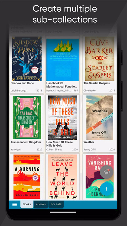 CLZ Books supports multiple collections displayed as Excel-like tabs. This makes it easy to separate physical books from ebooks, manage collections for different people, or track books that have been sold or are available for sale.