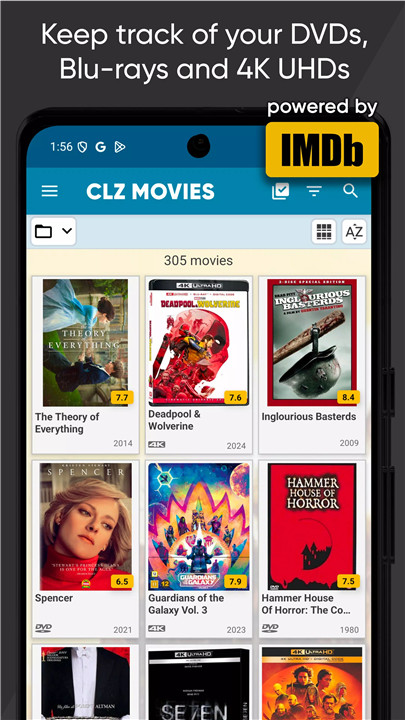 CLZ Movies catalogs DVDs, Blu-rays, and 4K UHDs with official IMDb data and barcode scanning, providing a powerful and accurate way to manage movie collections of any size. Designed for film collectors and enthusiasts, the app combines fast cataloging tools with rich, reliable movie information. From classic films to the latest releases, CLZ Movies keeps collections organized, searchable, and visually appealing.
