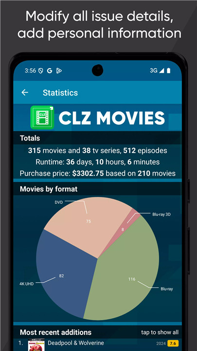 CLZ Movies is one of several collection apps developed by CollectorZ, alongside solutions for books, music, comics, and video games. CLZ has been building collection database software since 1996 and continues to deliver regular updates from its Amsterdam-based team.