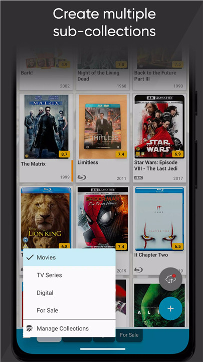 CLZ Movies allows the creation of multiple collections displayed as Excel-like tabs. This makes it easy to separate physical media from digital movies, manage collections for different people, or track films that have been sold or are available for sale.