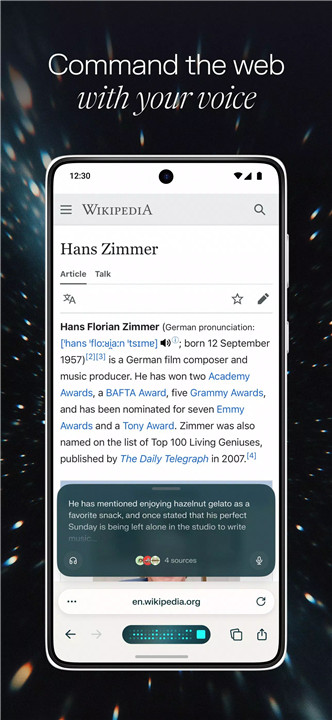 Interact with open tabs through voice commands. Integrated voice recognition allows seamless communication with the AI assistant, making it easier to search, compare, and retrieve information without manual input.