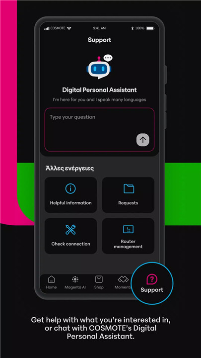 COSMOTE app offers easy connection management, AI tools, exclusive rewards, and seamless support—download now to simplify your digital experience. Designed with a fresh interface and enhanced functionality, the application brings all essential services into one convenient platform. It enables efficient handling of mobile, landline, and TV connections while providing access to intelligent tools and exclusive benefits.