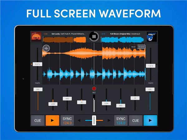 You can access your SoundCloud library to mix the newest tracks (streamed tracks cannot be recorded due to copyright), and the highly accurate waveform view makes syncing effortless. Customize your interface with your preferred color scheme, switch to portrait mode for quicker control on the move, and record your sets to share them with the world.