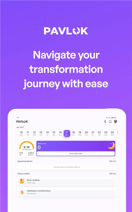 The revamped home screen offers a sleek, user-friendly layout that makes navigating your transformation journey effortless. Quick access to key features and insightful displays help you stay focused on your habit goals.