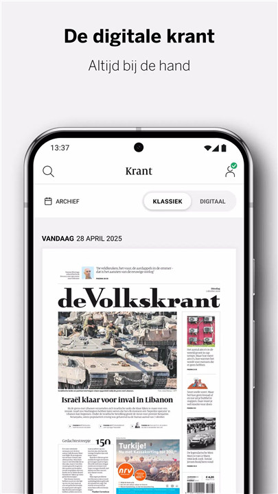 The de Volkskrant – Nieuws app brings the latest news, in-depth background stories, and the digital edition of the newspaper directly to smartphones and tablets. Produced by a team of experienced journalists, columnists, and correspondents around the world, the app ensures high-quality, reliable reporting at all times.