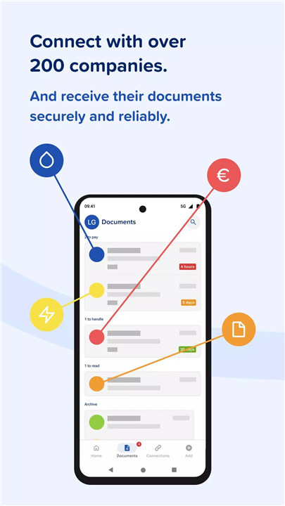 Doccle brings documents from different companies together in one place. Bills, contracts, insurance papers, and official communications are stored in a single, well-organized digital archive. Documents remain accessible permanently and can be kept for as long as required, ensuring important records are always within reach.