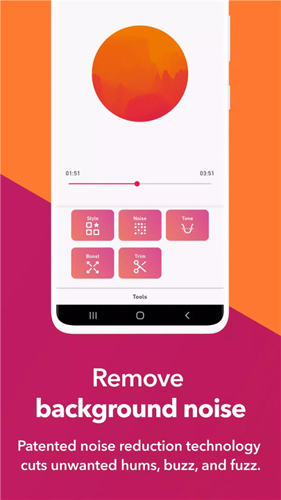 Dolby On includes a free audio editor that allows trimming, adjusting EQ, and fine-tuning bass, mids, and treble. Users can apply six custom-designed Sound Tools—audio presets modeled on thousands of professional recordings—to instantly enhance their tracks. External microphones are supported for added versatility and tonal control.