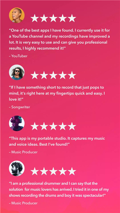 The app can record music, voice memos, podcasts, rehearsals, ideas, lyrics, beats, live performances, and videos with studio-quality sound.