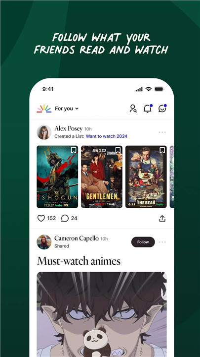 Stay inspired by your friends’ reading and watching habits. Your personalized feed includes: