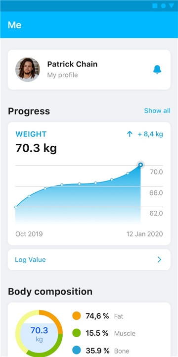 Yes. You can log daily activities, monitor your weight and body metrics, and view progress charts to track improvements over time.