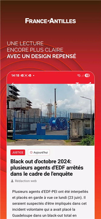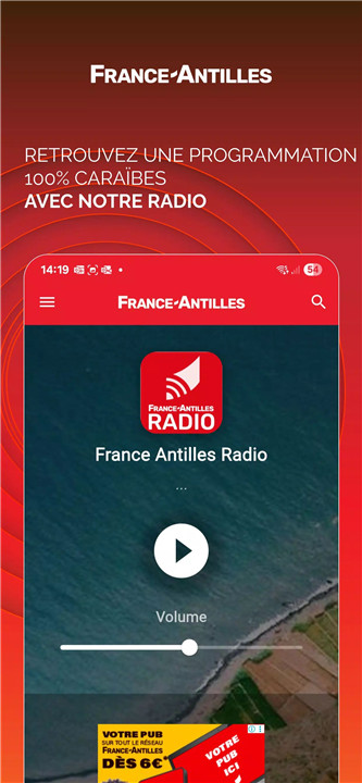 The app offers photo slideshows, videos, and the new France-Antilles Web Radio feature, giving users multiple ways to engage with news content beyond text.