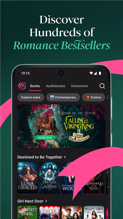 Galatea is a romance-focused reading and listening app offering ebooks, audiobooks, and interactive fiction from bestselling and exclusive authors.