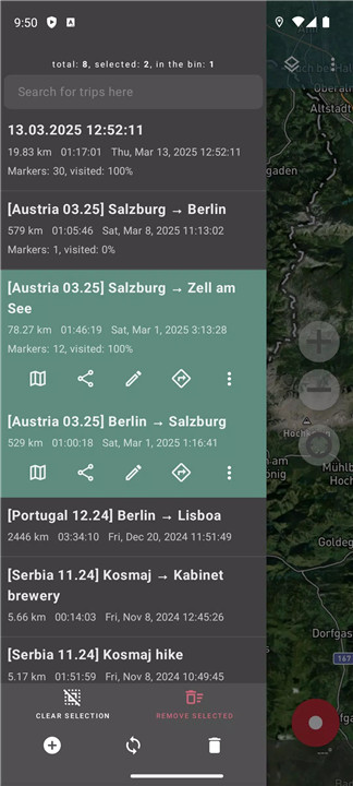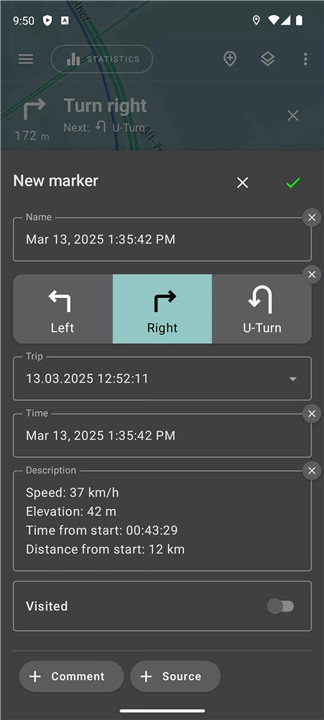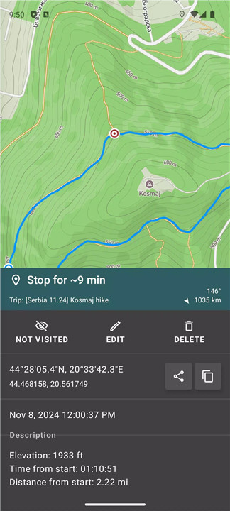 Drop pins to mark important locations like viewpoints, campsites, or water sources. Share your adventures with friends by sending GPX or KML route files. You can also post colorful screenshots of your tracks to social media to show off your progress.