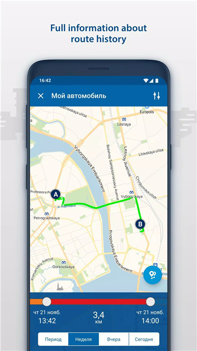 · Access comprehensive route monitoring, including track history, route lengths, and speeds.
