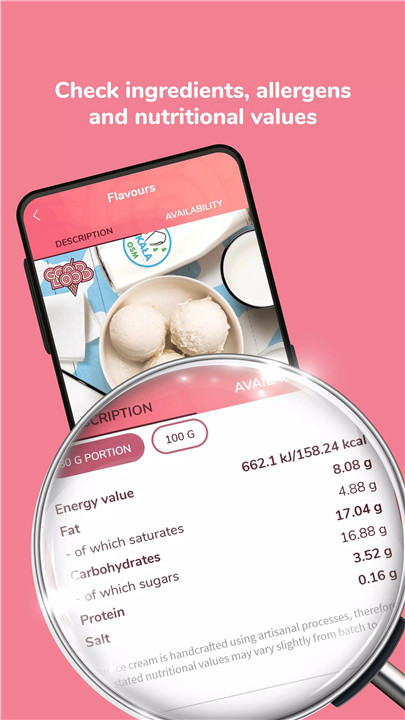 The app provides comprehensive information about each flavor, including ingredients, nutritional values, and allergen details. This transparency helps users make informed choices based on dietary needs and personal preferences.