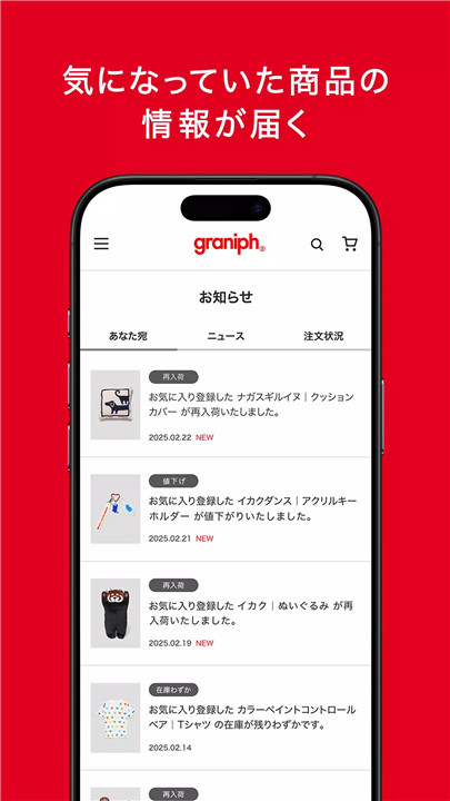 Stay informed with notifications about new product releases, restocks, and promotional campaigns. Shipping status updates for purchased items are also delivered through the app, ensuring order progress is always easy to track.