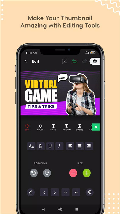 The app offers extensive customization options, including the ability to add text, overlays, stickers, and brand logos. A variety of typography fonts, effects, shapes, and symbols allow users to create unique designs. The interface makes it easy to adjust elements, combine layers, and enhance the visual appeal of thumbnails and banners.