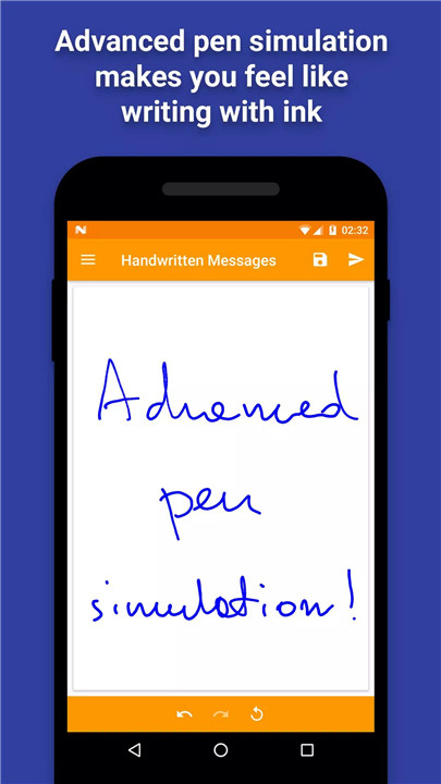 The app uses cutting-edge pen simulation technology to replicate the look and feel of a real pen. Your handwriting will appear natural, with smooth, flowing strokes thanks to an advanced stroke smoothing algorithm. The result is elegant, original messages that stand out from standard text.