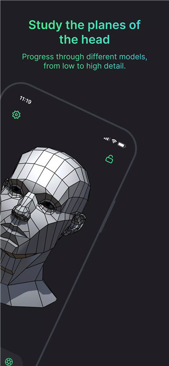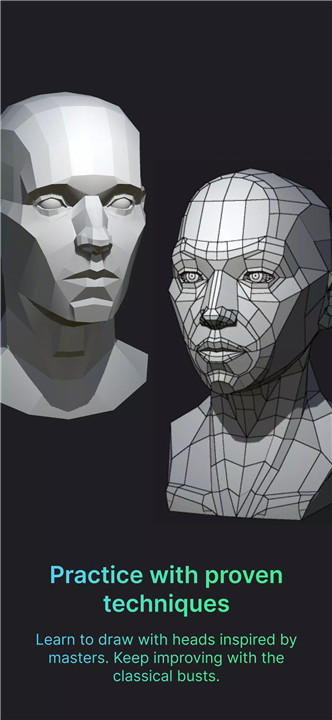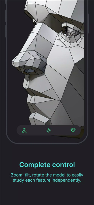 The app includes 25 detailed 3D models, with 2 free models available for immediate practice. These models are designed following classical and modern drawing techniques, helping artists progress from simple facial planes to intricate structures. Users can also explore 5 classical models for an expanded study experience. This structure encourages gradual improvement and mastery over the subtleties of facial anatomy.