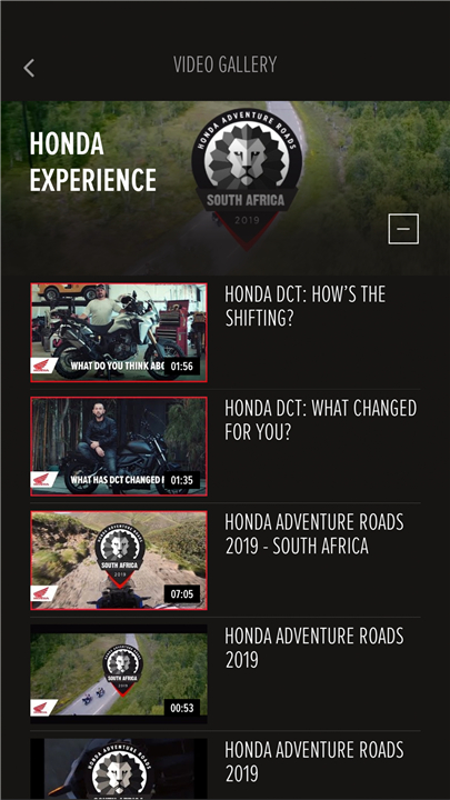 • Access the latest Honda motorcycle video content, from promotional clips to riding tips.