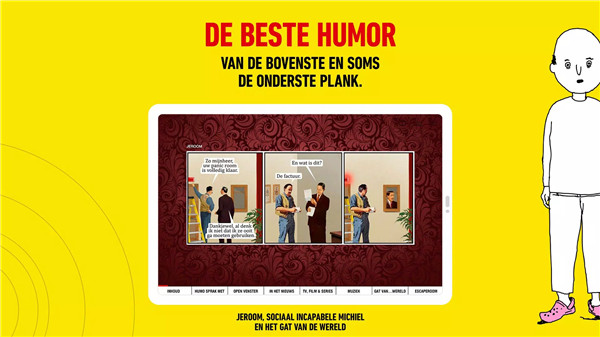 Humo’s humor sections feature contributions from iconic cartoonists such as Jeroom, Kamagurka, and Michiel (Socially Incapable), along with popular series like Het Gat van de Wereld and Uitlaat. These provide daily laughter and satire alongside more serious content.