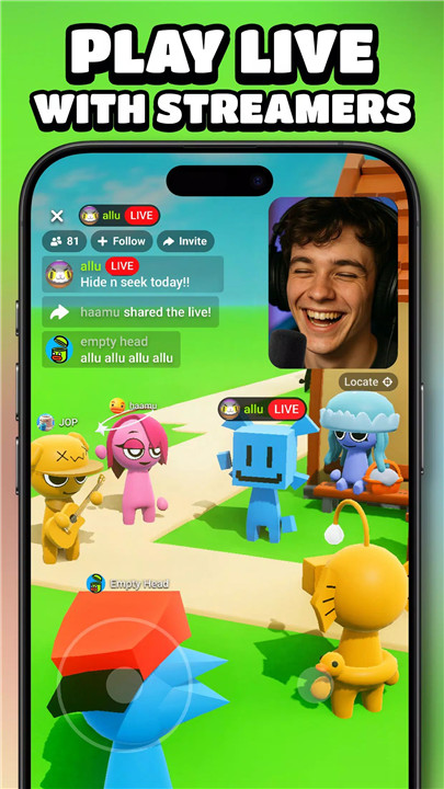 Explore a constantly updating feed of live gaming events, featuring the funniest game modes and your favorite Live Creators. Dive into the action instantly—no waiting, no setup. Just tap and play while the live session is happening.