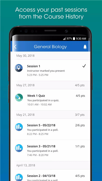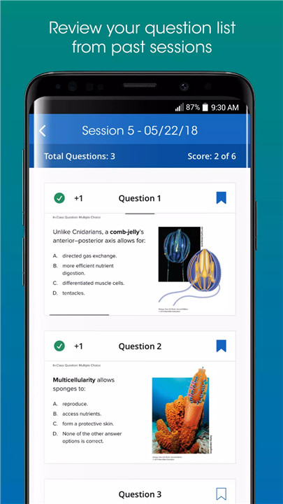 Review all the questions and answers from your sessions after class to prepare for quizzes and exams. Having access to this information supports effective study habits and better retention.