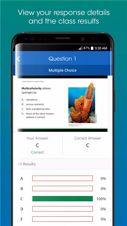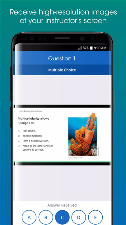 The iClicker Student app lets you participate in classroom polls and quizzes directly from your Android device. No more fumbling for clickers or paper—just tap your answer and get immediate feedback. See how your responses compare to the rest of the class in real time, enhancing your learning experience. After class, the app saves all questions and responses in the cloud, allowing you to review and study whenever and wherever you want.