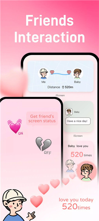 A unique social component allows interaction with close friends directly from the desktop. Features include gift exchanges and real-time distance display, adding an emotional and interactive layer to the desktop experience.