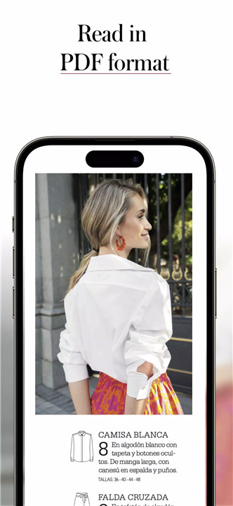 The Patrones magazine app provides access to the monthly issue in PDF format. Each edition can be read directly within the app, preserving the original layout and design of the print magazine while offering the flexibility of digital reading. New issues are delivered automatically as part of an active subscription.