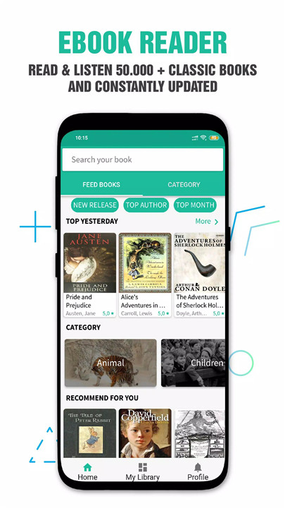 The app offers a vast collection of over 50,000 free eBooks, including works by authors like William Shakespeare, Jane Austen, Charles Dickens, and many more. Some of the top books include Moby Dick, Pride and Prejudice, and Alice's Adventures in Wonderland.