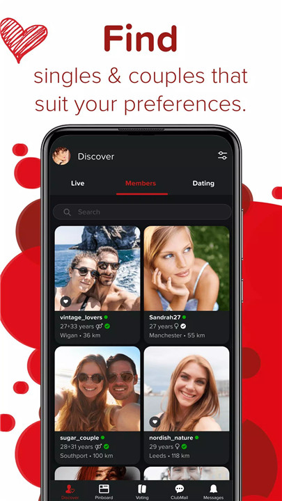 The app’s intelligent search system allows users to discover singles and couples nearby who match their preferences. Voting and swiping tools simplify the process of finding compatible members quickly, while preference settings ensure that interactions are meaningful from the start.