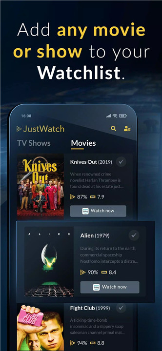 Turn your smartphone into the ultimate media remote. Queue movies and shows directly to your Watchlist without logging in. For a seamless experience across devices, create an account to synchronize your Watchlist anywhere.