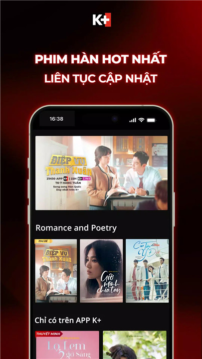 K+ offers a rich library of new, quality, and diverse series and movies for all tastes. Enjoy popular Chinese and Korean day-and-date series featuring top idols, along with K+ORIGINAL Vietnamese series showcasing local storytelling at its best. Families will love the educational cartoons designed for children, while cinephiles can indulge in award-winning US and European blockbusters and movies.