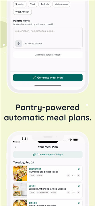 Premium users can generate weekly meal plans based on pantry contents and dietary preferences.
