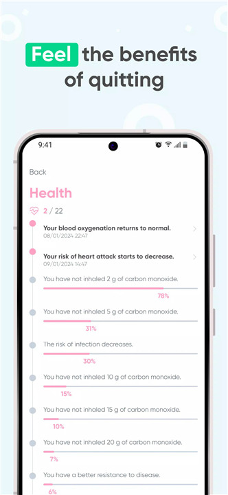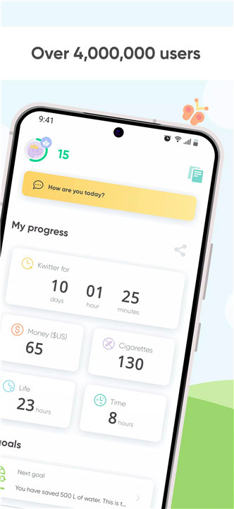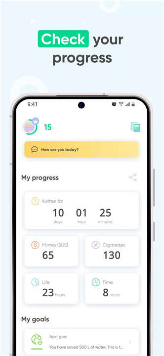 With Kwit’s easy-to-read dashboard, you can monitor your achievements in real time. See how many days you’ve gone without smoking, how much money you’ve saved, and how many cigarettes you haven’t smoked. Watch your life expectancy increase as you move closer to complete freedom from tobacco.