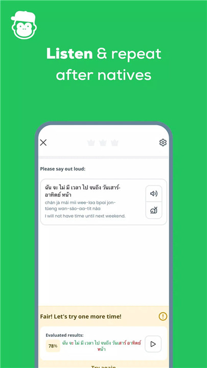 Each lesson includes native speaker recordings to ensure accurate pronunciation. For tonal and non-Latin languages, transcription options and writing practice further strengthen understanding.
